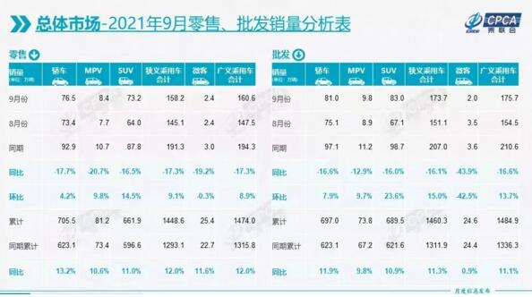 10月12日,乘联会发布的最新数据显示,9月我国乘用车市场零售量为158.2万辆,同比下降